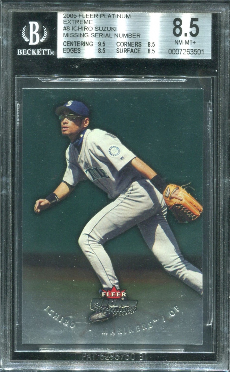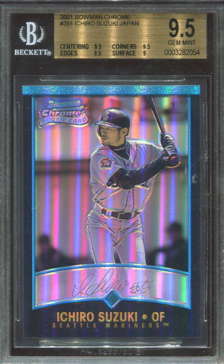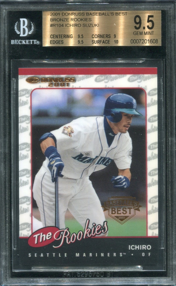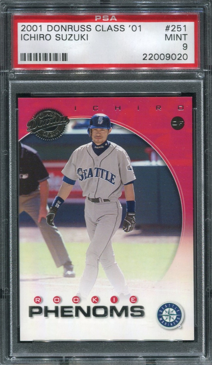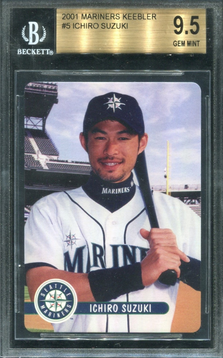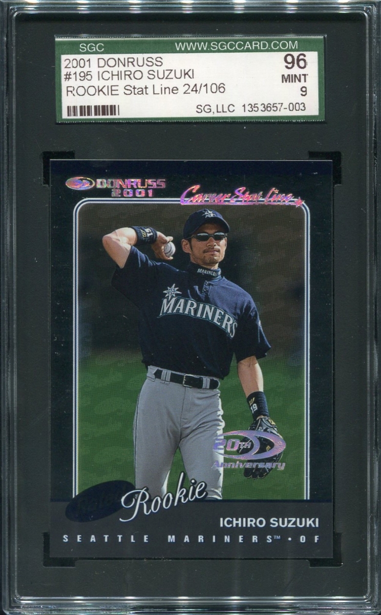 Graded RC's GU / Relic Cards #'d / Print Run 1/1 Autographed Cards Error Mini BGS 1993 Tomy ID Low Series BGS 2001 Bowman Draft Picks BGS 2001 Bowman Heritage BGS 2001 Donruss The Rookies Baseballs Best Bronze BGS 2001 Donruss Classics Timeless Tributes /100 BGS 2001 Donruss Elite Aspirations /49 BGS 2001 Fleer Authority /2001 BGS 2001 Fleer Authority Rookie Prominence /25 BGS 2001 Fleer Platinum BGS 2001 Fleer Tradition BGS 2001 Keebler BGS 2001 Leaf Certified Materials Freshman Fabric /200 BGS 2001 Leaf Rookies and Stars Longevity /25 BGS 2001 Topps Traded ROY BGS 2001 Topps Traded ROY Chris Fehn PC BGS 2001 Ultimate Collection Ultimate Bat Silver /250 BGS 2001 Ultimate Collection Autograph /250 BGS 2001 Upper Deck BGS 2001 Upper Deck R.O.Y. Gold #19 /100 BGS 2001 UD Collectibles SE1 BGS 2001 Upper Deck Evolution /2250 BGS 2001 Upper Deck MVP BGS 2001 UD Reserve /2500 BGS 2001 Upper Deck Victory BGS 2001 Upper Deck Victory Pristine BGS 2001 Upper Deck Victory Game Used Bat 2 BGS 2001 Upper Deck Victory Game Used Bat BGS 2001 Upper Deck Tribute to 51 Jumbo Bonus /2001 BGS 2002 Bowman Chrome Gold Refractor /50 BGS 2002 Fleer Showcase Error Piazza on Front BGS 2003 Ultimate Collection Dual Patch /99 BGS 2004 Donruss Elite Status Gold Die Cut /24 BGS 2004 SP Game Used Patch Premium Patches /50 BGS 2005 Fleer Authentix Standing Room Only /10 BGS 2005 Fleer Platinum Extreme /20 BGS 2006 Topps Finest Black Refractor /99 BGS 2007 Bowman Chrome Orange Refractor /25 BGS 2007 Topps Sterling White Suede #50 /50 BGS 2008 Sp Authentic Gold /50 BGS 2009 Allen & Ginter Mini Bazooka Back /25 BGS 2009 Bowman Chrome Orange Refractor /25 BGS 2010 Bowman Chrome Red Refractor /5 BGS 2010 Topps Chrome National Chicle Gold Refractor /50 BGS 2011 Topps Finest Purple Refractor /5 BGS 2013 Select Prizm BGS 2013 Leaf Immortals Collection Ichiro Auto J.M. BGS 2015 Panini Prizm Gold Prizm /10 BGS 2015 Topps Update Sparkle Variation BGS 2016 Bowman Chrome Orange Refractor /25 BGS 2017 Topps Finest Orange Refractor /25 BGS 2018 Bowman Chrome Red Refractor /5 CSG 2001 Leaf Certified Certified Skills Mirror Gold /25 CSG 2011 Topps Foilboard Mariners Team Checklist /75 Leaf 2011 Leaf Metal Draft Proof 1/1 Leaf 2011 Leaf Valiant Draft Proof 1/1 Leaf 2019 Leaf Best of Baseball Prismatic Red Proof 1/1 PGI 2001 Sports Card Investor Gold PSA 1998 BBM Best 9 #540. Thanks Dane! PSA 2001 Bowman Chrome X-Fractor Japan PSA 2001 Bowman Chrome X-Fractor English PSA 2001 Donruss DK Baseballs Best Bronze /999 PSA 2001 Donruss The Rookies Baseballs Best Silver /499 PSA 2001 Donruss RR Baseballs Best Bronze /999 PSA 2001 Donruss RR Baseballs Best Silver /499 PSA 2001 Donruss RR Baseballs Best Gold /99 PSA 2001 Donruss Class of 2001 Rewards #5 PSA 2001 Donruss Class of 01 Bobblehead /2000 PSA 2001 Donruss Class of 2001 missing serial number PSA 2001 Fleer All Star Fanfest Redemption PSA 2001 Fleer Authority Prominence Prospects /75 PSA 2001 Fleer Focus /999 PSA 2001 Fleer Platinum Chart Toppers #416 PSA 2001 Fleer Platinum Chart Toppers #417 PSA 2001 Fleer Platinum Chart Toppers #420 PSA 2001 Fleer Platinum Team Leaders PSA 2001 Fleer Platinum #511 PSA 2001 Fleer Platinum #252 Platinum Parallel /21 PSA 2001 Keebler PSA 2001 MLB Showdown Pennant Run All Star Game Promo PSA 2001 MLB Showdown Pennant Run National Promo PSA 2001 MLB Showdown Pennant Run Showdown Stars Promo PSA 2001 E-Topps PSA 2001 Topps Certified Auto PSA 2001 Upper Deck R.O.Y. Gold #10 /100 PSA 2001 Upper Deck R.O.Y. Gold #28 /100 PSA 2001 Upper Deck R.O.Y. Gold #45 /100 PSA 2001 UD Collectibles MLB Playmaker PSA 2001 UD Collectibles SE1 PSA 2001 UD Collectibles SE2 PSA 2001 UD Reserve The New Order PSA 2001 Upper Deck Evolution E-Card Classics Unscratched PSA 2001 Upper Deck Evolution All Star Bronze PSA 2001 Upper Deck Evolution All Star Gold /51 PSA 2001 UD Stars of Japan /1,500 PSA 2001 Upper Deck Victory PSA 2001 Upper Deck Vintage PSA 2002 Topps Own the Game OG12 PSA 2002 Topps PSA 2002 Topps Heritage PSA 2002 Upper Deck Vintage PSA 2003 Topps PSA 2004 Topps PSA 2005 Topps PSA 2005 Topps Season Highlights PSA 2005 Topps Finest Refractor /399 PSA 2006 Topps PSA 2007 Bowman Chrome Gold Refractor /50 PSA 2007 Topps PSA 2008 Topps PSA 2009 Bowman Chrome Orange Refractor /25 PSA 2009 Topps PSA 2010 Topps PSA 2010 Topps Chrome Gold Refractor /50 PSA 2010 Topps Chrome Red Refractor /25 PSA 2010 Upper Deck Double Take Varitation PSA 2011 Topps PSA 2011 Topps Foilboard /75 PSA 2012 Topps PSA 2015 Topps Photo Variation PSA 2016 Topps