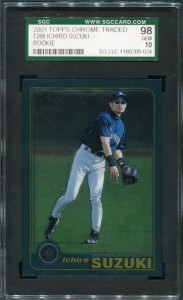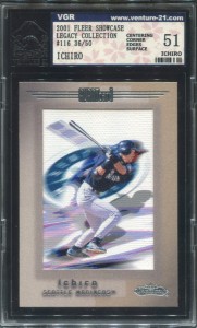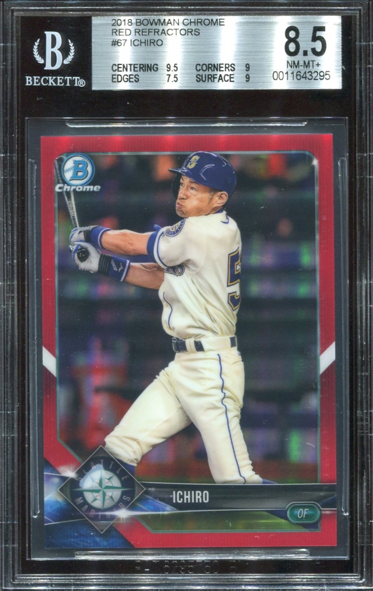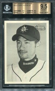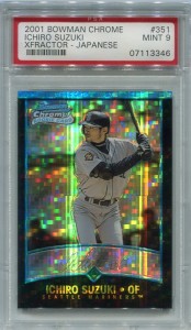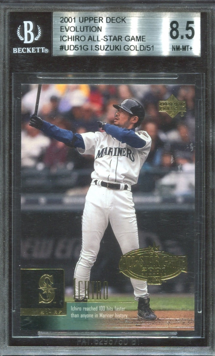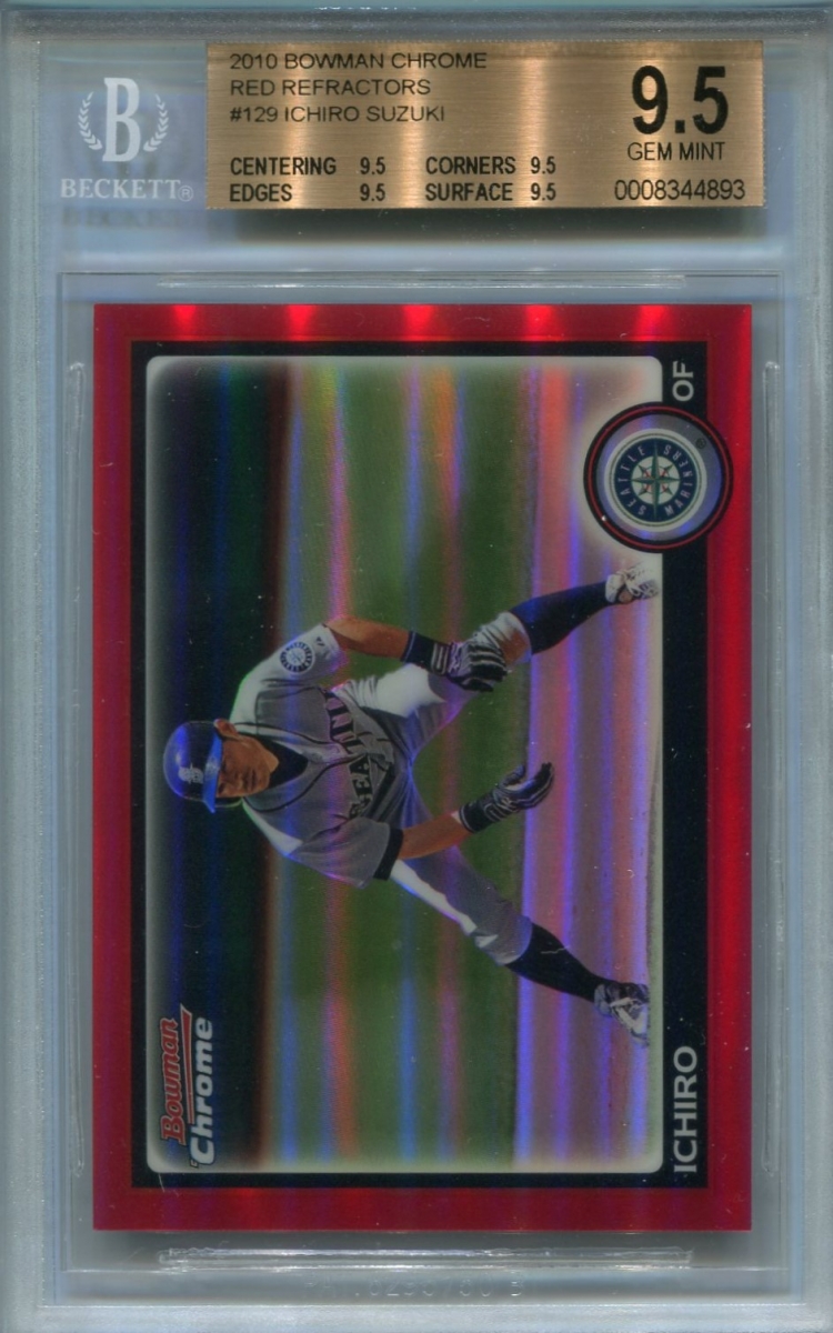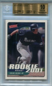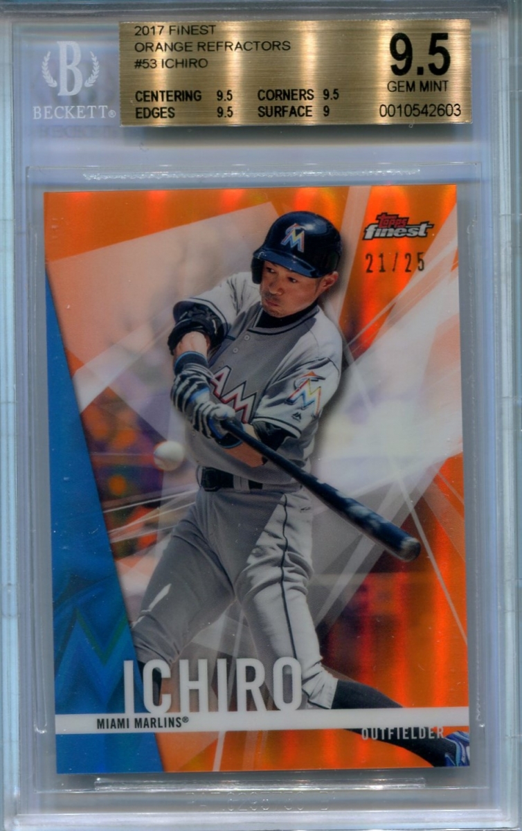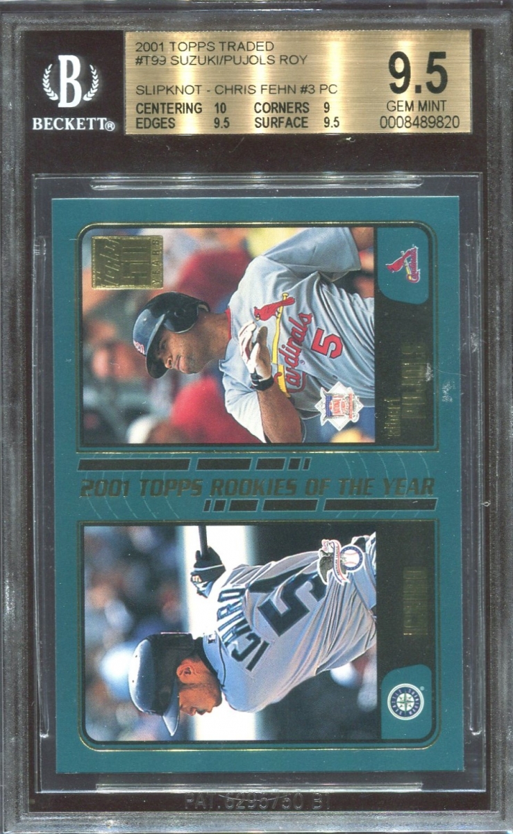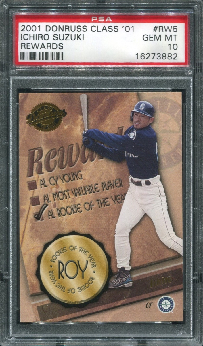 Graded RC's GU / Relic Cards #'d / Print Run 1/1 Autographed Cards Error Mini BGS 1993 Tomy ID Low Series BGS 2001 Bowman Draft Picks BGS 2001 Bowman Heritage BGS 2001 Donruss The Rookies Baseballs Best Bronze BGS 2001 Donruss Classics Timeless Tributes /100 BGS 2001 Donruss Elite Aspirations /49 BGS 2001 Fleer Authority /2001 BGS 2001 Fleer Authority Rookie Prominence /25 BGS 2001 Fleer Platinum BGS 2001 Fleer Tradition BGS 2001 Keebler BGS 2001 Leaf Certified Materials Freshman Fabric /200 BGS 2001 Leaf Rookies and Stars Longevity /25 BGS 2001 Topps Traded ROY BGS 2001 Topps Traded ROY Chris Fehn PC BGS 2001 Ultimate Collection Ultimate Bat Silver /250 BGS 2001 Ultimate Collection Autograph /250 BGS 2001 Upper Deck BGS 2001 Upper Deck R.O.Y. Gold #19 /100 BGS 2001 UD Collectibles SE1 BGS 2001 Upper Deck Evolution /2250 BGS 2001 Upper Deck MVP BGS 2001 UD Reserve /2500 BGS 2001 Upper Deck Victory BGS 2001 Upper Deck Victory Pristine BGS 2001 Upper Deck Victory Game Used Bat 2 BGS 2001 Upper Deck Victory Game Used Bat BGS 2001 Upper Deck Tribute to 51 Jumbo Bonus /2001 BGS 2002 Bowman Chrome Gold Refractor /50 BGS 2002 Fleer Showcase Error Piazza on Front BGS 2003 Ultimate Collection Dual Patch /99 BGS 2004 Donruss Elite Status Gold Die Cut /24 BGS 2004 SP Game Used Patch Premium Patches /50 BGS 2005 Fleer Authentix Standing Room Only /10 BGS 2005 Fleer Platinum Extreme /20 BGS 2006 Topps Finest Black Refractor /99 BGS 2007 Bowman Chrome Orange Refractor /25 BGS 2007 Topps Sterling White Suede #50 /50 BGS 2008 Sp Authentic Gold /50 BGS 2009 Allen & Ginter Mini Bazooka Back /25 BGS 2009 Bowman Chrome Orange Refractor /25 BGS 2010 Bowman Chrome Red Refractor /5 BGS 2010 Topps Chrome National Chicle Gold Refractor /50 BGS 2011 Topps Finest Purple Refractor /5 BGS 2013 Select Prizm BGS 2013 Leaf Immortals Collection Ichiro Auto J.M. BGS 2015 Panini Prizm Gold Prizm /10 BGS 2015 Topps Update Sparkle Variation BGS 2016 Bowman Chrome Orange Refractor /25 BGS 2017 Topps Finest Orange Refractor /25 BGS 2018 Bowman Chrome Red Refractor /5 CSG 2001 Leaf Certified Certified Skills Mirror Gold /25 CSG 2011 Topps Foilboard Mariners Team Checklist /75 Leaf 2011 Leaf Metal Draft Proof 1/1 Leaf 2011 Leaf Valiant Draft Proof 1/1 Leaf 2019 Leaf Best of Baseball Prismatic Red Proof 1/1 PGI 2001 Sports Card Investor Gold PSA 1998 BBM Best 9 #540. Thanks Dane! PSA 2001 Bowman Chrome X-Fractor Japan PSA 2001 Bowman Chrome X-Fractor English PSA 2001 Donruss DK Baseballs Best Bronze /999 PSA 2001 Donruss The Rookies Baseballs Best Silver /499 PSA 2001 Donruss RR Baseballs Best Bronze /999 PSA 2001 Donruss RR Baseballs Best Silver /499 PSA 2001 Donruss RR Baseballs Best Gold /99 PSA 2001 Donruss Class of 2001 Rewards #5 PSA 2001 Donruss Class of 01 Bobblehead /2000 PSA 2001 Donruss Class of 2001 missing serial number PSA 2001 Fleer All Star Fanfest Redemption PSA 2001 Fleer Authority Prominence Prospects /75 PSA 2001 Fleer Focus /999 PSA 2001 Fleer Platinum Chart Toppers #416 PSA 2001 Fleer Platinum Chart Toppers #417 PSA 2001 Fleer Platinum Chart Toppers #420 PSA 2001 Fleer Platinum Team Leaders PSA 2001 Fleer Platinum #511 PSA 2001 Fleer Platinum #252 Platinum Parallel /21 PSA 2001 Keebler PSA 2001 MLB Showdown Pennant Run All Star Game Promo PSA 2001 MLB Showdown Pennant Run National Promo PSA 2001 MLB Showdown Pennant Run Showdown Stars Promo PSA 2001 E-Topps PSA 2001 Topps Certified Auto PSA 2001 Upper Deck R.O.Y. Gold #10 /100 PSA 2001 Upper Deck R.O.Y. Gold #28 /100 PSA 2001 Upper Deck R.O.Y. Gold #45 /100 PSA 2001 UD Collectibles MLB Playmaker PSA 2001 UD Collectibles SE1 PSA 2001 UD Collectibles SE2 PSA 2001 UD Reserve The New Order PSA 2001 Upper Deck Evolution E-Card Classics Unscratched PSA 2001 Upper Deck Evolution All Star Bronze PSA 2001 Upper Deck Evolution All Star Gold /51 PSA 2001 UD Stars of Japan /1,500 PSA 2001 Upper Deck Victory PSA 2001 Upper Deck Vintage PSA 2002 Topps Own the Game OG12 PSA 2002 Topps PSA 2002 Topps Heritage PSA 2002 Upper Deck Vintage PSA 2003 Topps PSA 2004 Topps PSA 2005 Topps PSA 2005 Topps Season Highlights PSA 2005 Topps Finest Refractor /399 PSA 2006 Topps PSA 2007 Bowman Chrome Gold Refractor /50 PSA 2007 Topps PSA 2008 Topps PSA 2009 Bowman Chrome Orange Refractor /25 PSA 2009 Topps PSA 2010 Topps PSA 2010 Topps Chrome Gold Refractor /50 PSA 2010 Topps Chrome Red Refractor /25 PSA 2010 Upper Deck Double Take Varitation PSA 2011 Topps PSA 2011 Topps Foilboard /75 PSA 2012 Topps PSA 2015 Topps Photo Variation PSA 2016 Topps